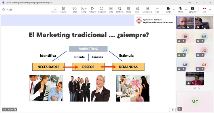 El curs, conduït per Luis Francisco Casado, soci director de Marketing Gabinet, va combinar continguts teòrics i pràctics per ajudar les persones participants a millorar la seva presència digital i a desenvolupar estratègies efectives de comunicació online.